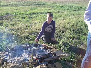 After the fishing derby, have a campfire in the back yard. This seemed like a wonderfully easy dinner, considering we had been gone all day, and since it has rained, the fire danger is not as high as it was a couple of weeks ago, so we caved in and let Cam light it up!