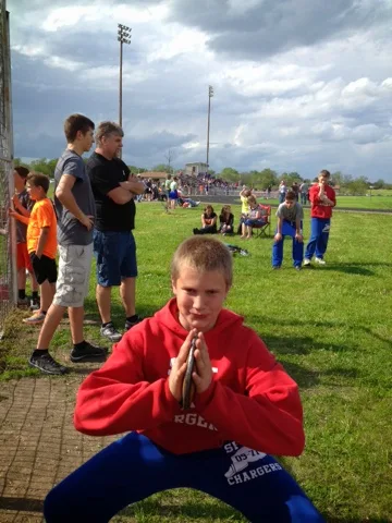 Cameron joined his 8th grade track team. He has had several meets but they have been either at times where we were frantically trying to get out of our house before the deadline, the weather was freezing cold, or they were 2 hours away! Needless to say I haven't been his greatest track fan. He has jokingly said it is ok mom 'track isn't a real sport' although we both know he doesn't mean that! He has been good about forgiving us for not coming to cheer him on.