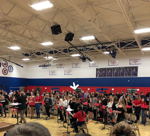 Yesterday, our school hosted the league band concert. This is something relatively new that the league is doing. It is pretty neat. They get all the bands together in the league, they choose some music (which the school directors work with the kids on before hand) then they get together with a guest director, and they come together and perform a concert.