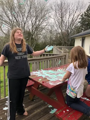 So our lives have changed. Things we thought were important have taken a backseat to staying home and safe from infection. Activities we enjoy have been cancelled, entire sports seasons gone, churches closed. Seeing friends is not happening. We have lived this with the kids for a few weeks now. We are ok. We are not a family that allows the b word. Nobody would ever say they are bored to me - because I have lists. They all know better! And honestly, we are all ok. Nothing really bad has happened to us as they asked us all to stay home. We have, on occasion, done some things as a result that I would have never done though. I let my kids make all sorts of concoctions, and I broke one of my own long standing life rules. I do not like to wait more than 30 minutes on places to eat. If a restaurant has a line, we go elsewhere. I have, on more than one occasion, made Jim really sad because I hate to wait. He has his heart set on eating someplace and I will refuse to sit around waiting to be seated. Enter pandemic. Rules broken, kids craving their lives back. Carbondale brought in the Kona Ice truck. You all know my kids love this kind of stuff. Snow cones at the county fair, slushes from Sonic, frozen sodas from Casey's....absolutely crazy for it. They asked if we could go over. I caved. When we got there, the line was already long. We honestly don't have anything better to do than wait, which is how, this week I broke my own longstanding rule and stood in line for an hour to get shaved ice. Yes, a whole hour. In. The. Rain. We had been there 30 minutes when it started to rain. We stayed there anyway. For shaved ice. It was worth it though. Landrie was also in line, so Quincy got to see her bestie, which made her super happy. Everyone got their shaved ice and it felt wonderful to be out, among (socially distant) other people, and have a little slice of normal.