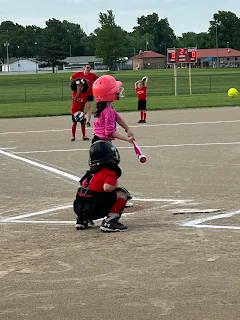 Evie had her first softball game last night.  Mallory and I ran down to watch her.  She did a great job!  She had a couple of hits, but they both went foul.  She paid attention, kept track of her stuff, and did what they told her.  She is awesome!
