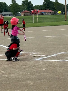 Evie had her first softball game last night. Mallory and I ran down to watch her. She did a great job! She had a couple of hits, but they both went foul. She paid attention, kept track of her stuff, and did what they told her. She is awesome!